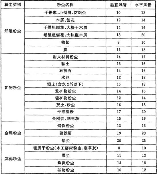 表K.0.1 除塵風(fēng)管的最小風(fēng)速(m/s)