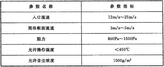 7.2.6 旋風除塵器可作為預除塵器使用。旋風除塵器計算參數應符合表7.2.6的規定。