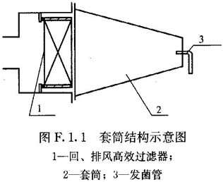 套筒(測定回、排風(fēng)高效過濾風(fēng)口時(shí)需要使用,罩住整個(gè)入口,使檢漏范圍包括邊框,長度應(yīng)使通過氣流時(shí)間為0.5s~1s,見圖F.1.1)。