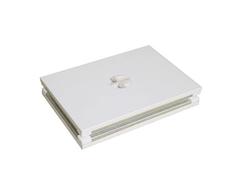 特性:1.公母口拼接或中字鋁拼接,拼縫自然成一線,安裝快捷。2.手工中空玻鎂板結構采用四周鍍鋅龍骨拼接,龍骨厚度為0.7mm,雙組份膠水粘合,靜態壓制,獲得比機制中空玻鎂板更高的強度及穩定性,擁有機制中空玻鎂板特性的同時,安裝效果也更佳。3.手工中空玻鎂板自重大,強度很高。  常規厚度:50mm,75mm,100mm。